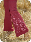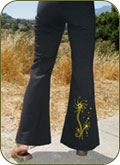 Narrow elastic waistline. Snug fit at the hips, flared leg.